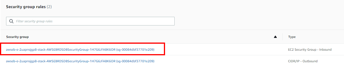 2. Security 항목에서 type이 EC2 Security Group - Inbound 클릭