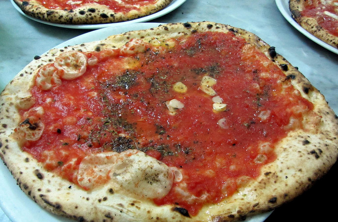 알렉상드르 뒤마가 르 코리콜로(1843년)에서 언급했듯이, 2리어드 슬라이스는 좋은 아침식사를 할 수 있고, 2수스는 온 가족이 먹을 수 있는 충분한 크기의 피자를 살 수 있습니다. 그들 중 어느 누구도 끔찍하게 복잡하지 않았습니다. 버질의 납작한 빵과 어떤 면에서는 비슷하지만, 그것들은 이제 많은 맛을 지닌 비싸지 않고 찾기 쉬운 재료들에 의해 정의되었습니다. 가장 간단한 것은 마늘, 라드 그리고 소금에 지나지 않습니다. 하지만 다른 것들은 카시오카발로, 세케니엘리 또는 바질을 포함했습니다. 어떤 사람들은 심지어 위에 토마토를 두었습니다. 최근에 와서야 아메리카에서 소개되었는데, 이것은 여전히 호기심이었고, 현대의 미식가들이 무시했습니다. 하지만 그들의 인기는 낮았고, 따라서 가격이 낮았기 때문에 그들을 매력적으로 만들었습니다.